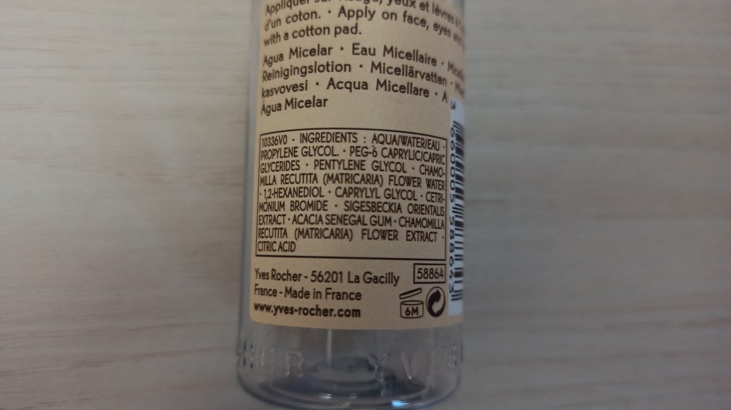 Nel calendario dell’Avvento di Yves Rocher ho trovato una confezione da 50 ml di acqua micellare alla camomilla che ho messo in uso e terminato.