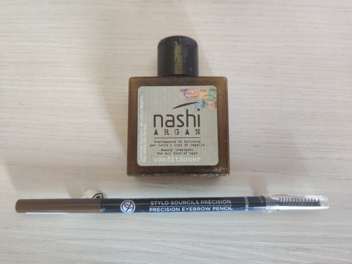 NASHI ARGAN – CONDITIONER. Faceva parte di un kit che conteneva varie mini taglie. In full size i formati sono da 200 e da 500 ml. È un balsamo dalla consistenza compatta che districa i capelli senza appesantirli. Il punto di forza è il profumo che crea dipendenza.