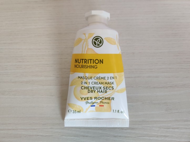 In un ordine passato di Yves Rocher avevo ricevuto in omaggio questa mini taglia di maschera 2 in 1 nutrizione per capelli secchi.